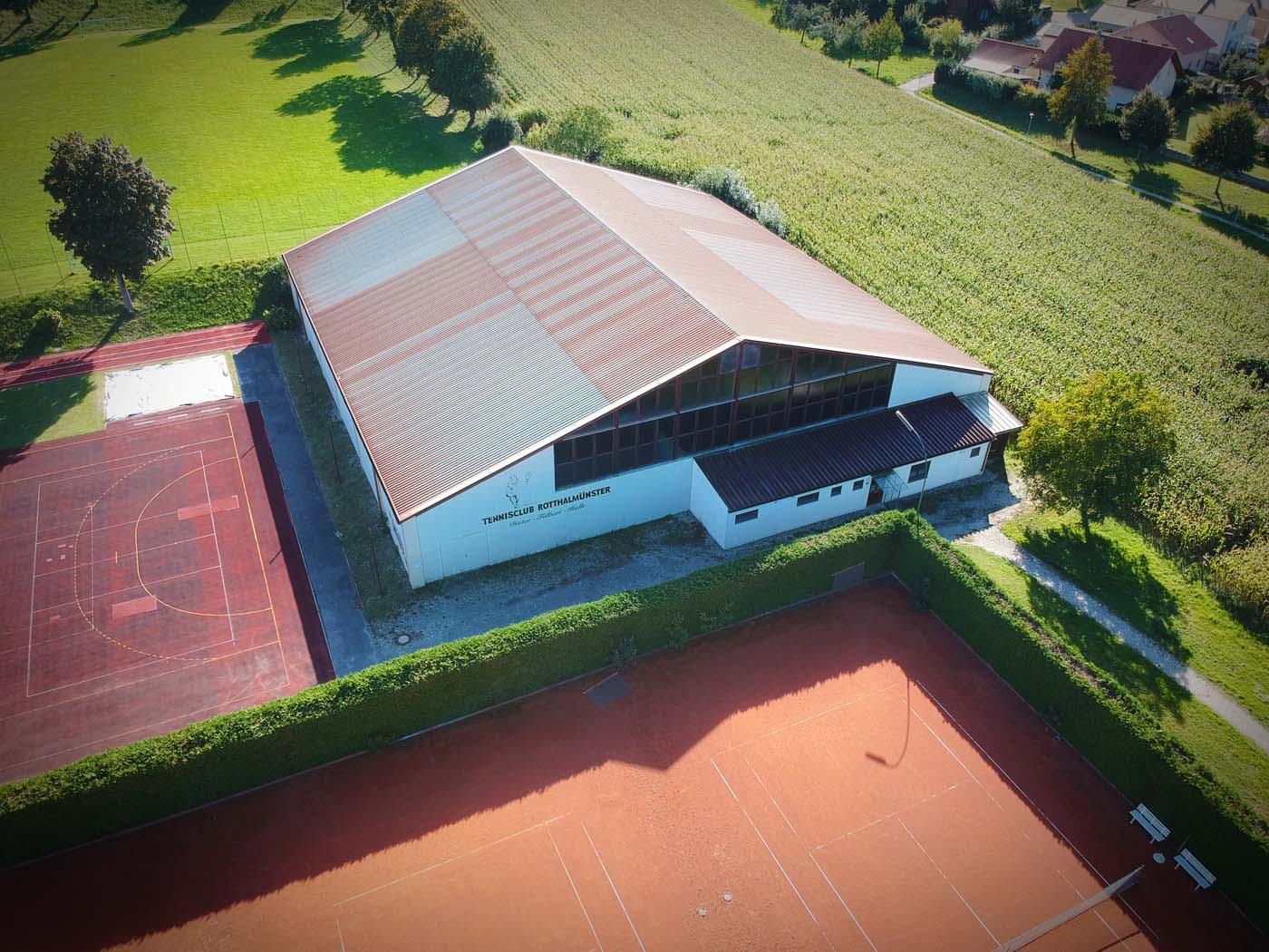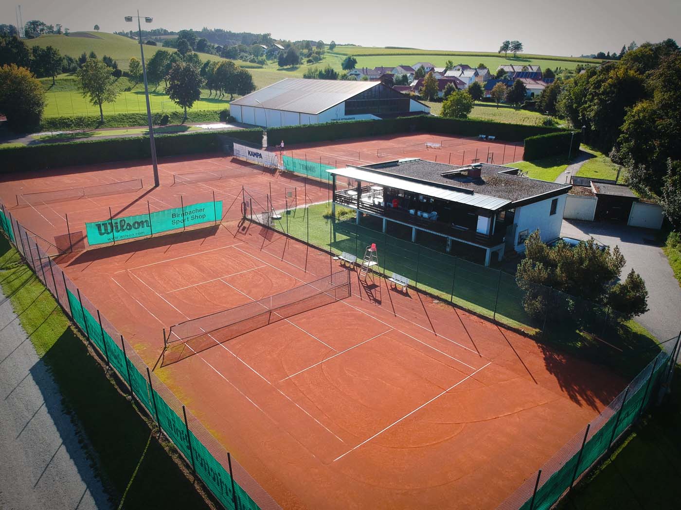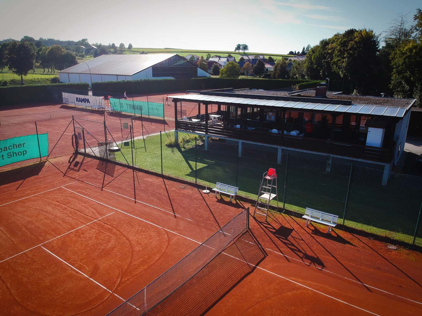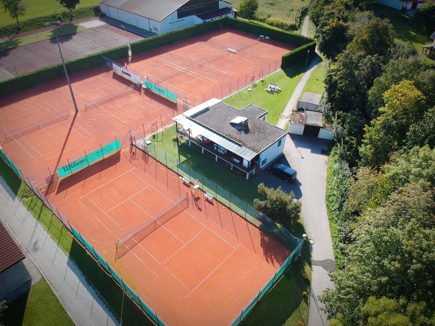 Unsere Außenanlage besteht aus 6 Sandplätzen und einem geräumigen Clubhaus.